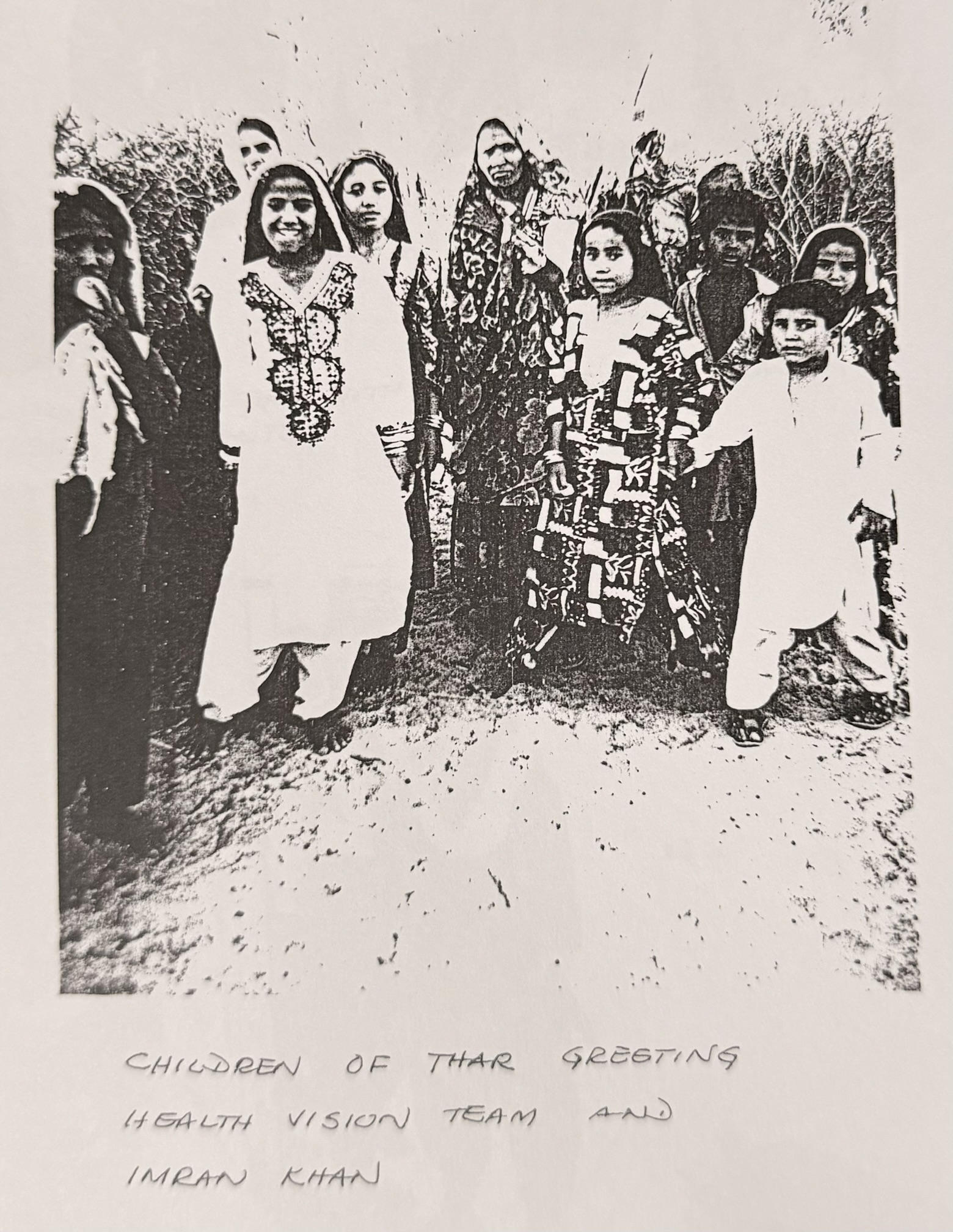 Thousands gathered to receive essential aid under the open sky — a striking moment of grassroots solidarity. Among the Health Vision team was Imran Khan, who at the time was a rising public figure and later went on to serve as the Prime Minister of Pakistan.